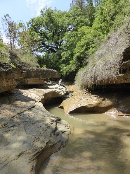 Van fossielen uit een oude zee op 1.300m langs rio Balcéz naar de Drolica grot
