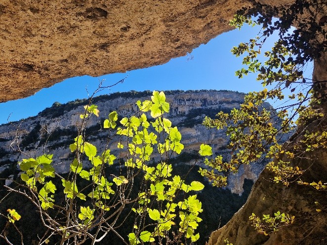 Vandaag doen we een hoogste punt en een diepste punt in één dag. Gebeurt in ons dagelijks leven ook weleens 😊. Na een ultra korte autotransfer van 3,5 km beginnen we de route vanuit Sarsa de Surta en lopen we naar de markante rotspunt van Peña de Sarsa met mooie uitzichten op het Monte Perdido massief en de Cañón de Añisclo. We gaan verder en lopen over fossielen van een 40 miljoen jaar oude zeebodem met een mooi zicht op de barranco van de rio Balcéz naar de zuidelijkste punt van de wandeling. Daar bezoeken we kort en met een krachtige hoofdlamp een fraaie natuurlijke karst grot, de Drólica, die makkelijk toegankelijk is. De afstand voor vandaag is 16 km als we teruglopen via Sant Maria de la Nuez; we stijgen dan 700m en dalen 740m met een looptijd van 6 uur en 15 minuten. Er is ook een verkorte versie (via Tozal Mamur) van 14 km mogelijk met 530m stijgen en dalen; deze heeft een loopijd van 5 uur en 25 min.